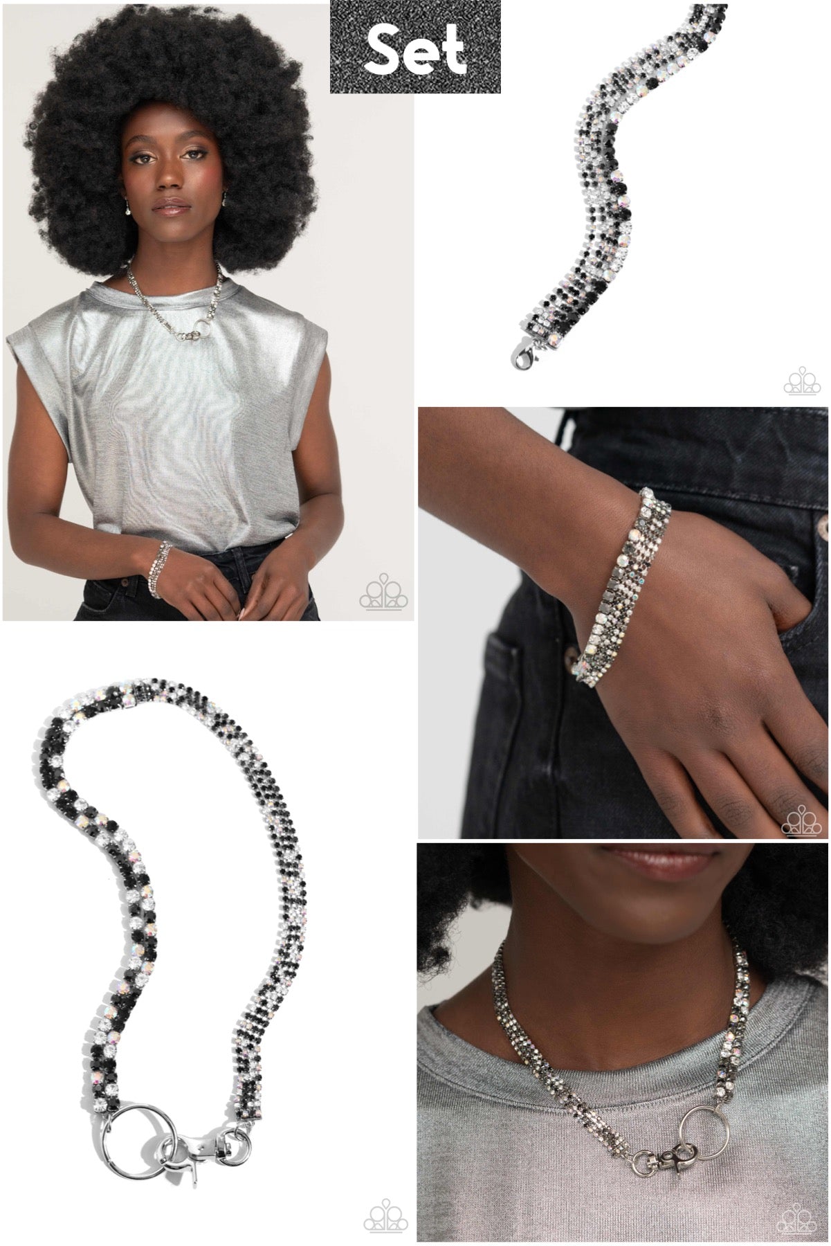 Set in pronged silver fittings, a double-stranded collection of crystal-like white gems, hematite, smoky, and iridescent gems connects to daintier versions of the same gems in a quartet of elongated strands. Both dynamic pairings connect and clip to a lobster clasp and silver ring for a fierce finish. Features a clasp closure. Due to its prismatic palette, color may vary.