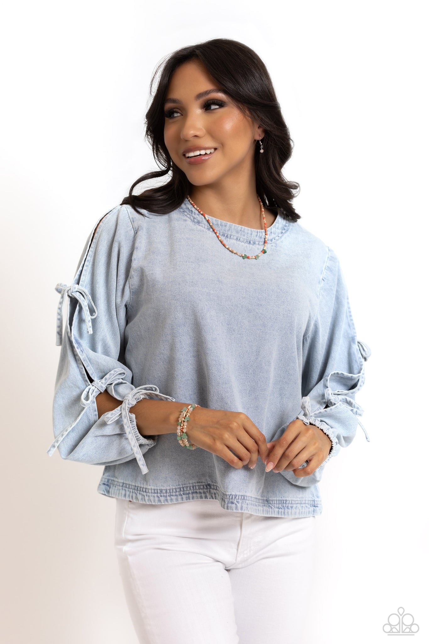 Strung along an invisible chain, a fashionable collection of Tender Peach, Doe, and Burnt Sienna seed beads and glassy champagne beads combine with chiseled jade stones as they coalesce below the neckline, creating a naturally stunning statement. Features an adjustable clasp closure. As the stone elements in this piece are natural, some color variation is normal.